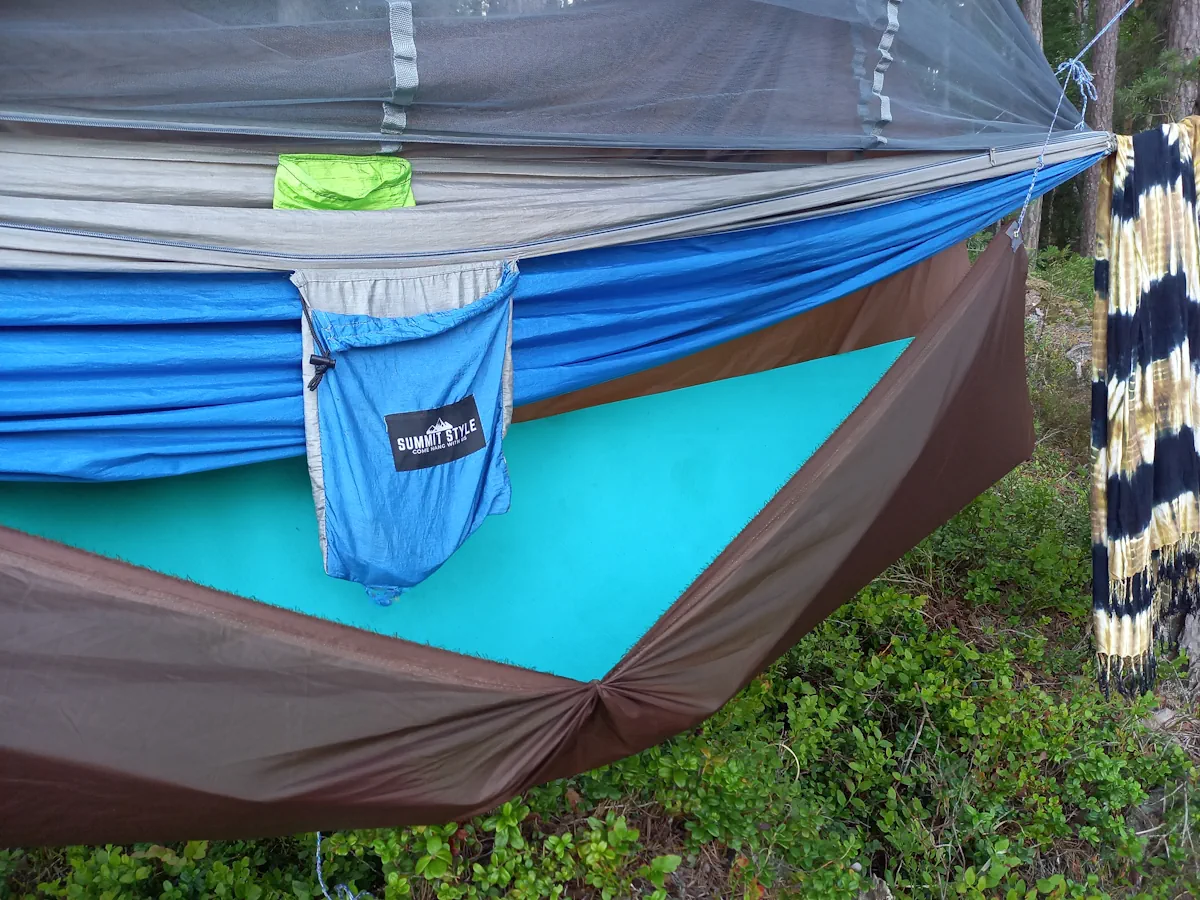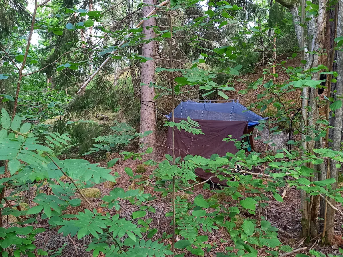 Zuerst bin ich voller Vorfreude auf den Wald, doch beim Packen überkommt mich die Nervosität. Ich werde schusselig, vergesse ständig, was mir noch fehlt, verliere den Überblick. Noch in letzter Sekunde – kurz bevor ich ins Bett gehe – treffe ich auf einen Teilnehmer des Nei-Gong-Workshops (an dem auch Simon teilnimmt). Da er hier immer in der Hängematte schläft, erzähle ich ihm stolz, dass ich mir nun auch einen selbstgebastelten Underquilt zugelegt habe – eine wärmende Lage, die man zusätzlich unter die Hängematte spannt. Und sofort denke ich: Das Mätteli, das ich dafür brauche, habe ich ja noch gar nicht eingepackt!