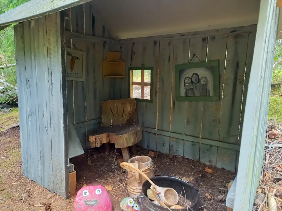 Und kurz darauf stehe ich vor einem wunderschönen öffentlichen Badestrand. Hier bin ich richtig. Ein Tisch, eine Trockentoilette, sogar eine kleine Schutzhütte.
