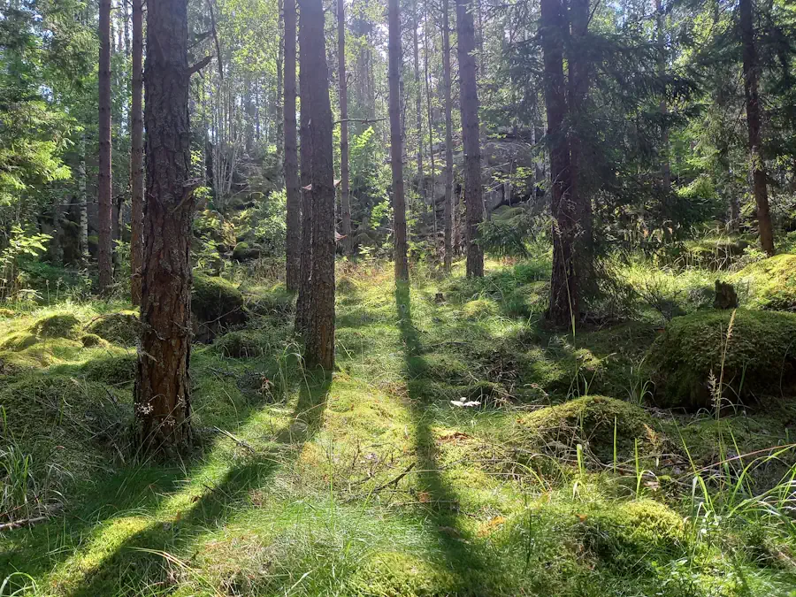 Mein motivationsgesteuerter Energiehebel war gestern weit unten, und auch heute Morgen geht es mir nicht anders. Erst als ich in Österbymo ankomme, kommt der Schub – plötzlich bin ich wieder voller Energie und wandere frisch und fröhlich durch den Wald.