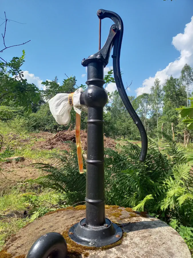 Da stand plötzlich ein Ziehbrunnen! Ich schleuderte das Gepäck zu Boden und stürzte mich mit der Flasche in der Hand auf das klapprige Ding. Es quietschte und klopfte beim Pumpen, aber das schöne Gurgeln des Wassers wollte nicht kommen. Kaputt.